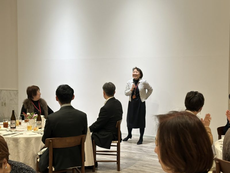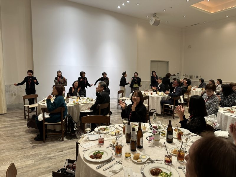 中村弥生会長の挨拶、来賓紹介、村田典子副会頭のご挨拶、乾杯と続きしばらく歓談と食事の時間となりました。各テーブルにて写真撮影なども行われました。