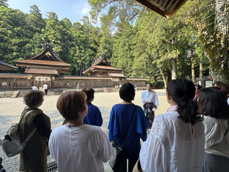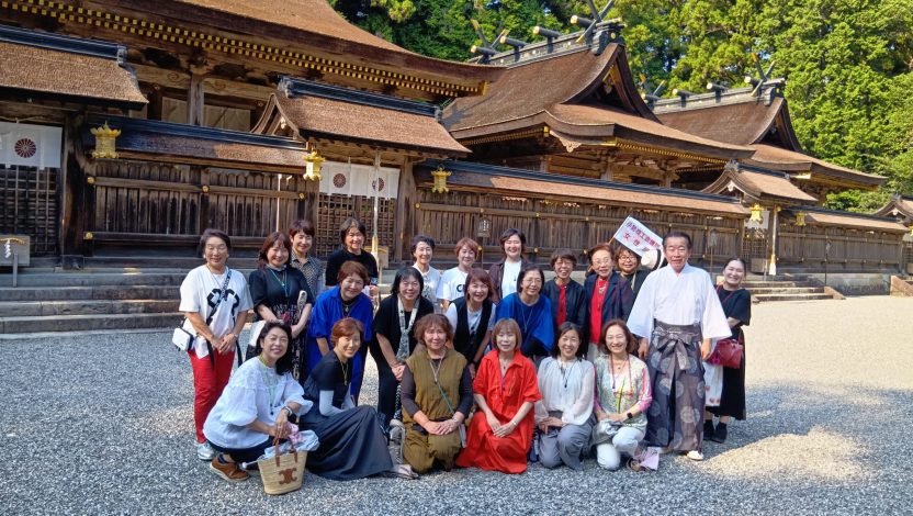 ここで御祈祷を受けるのですが、ビッグサプライズが。なんと宮司トップの九鬼家隆様が、お忙しいスケジュールの中、「女性部の皆様ならぜひお会いしたい」と直々にご案内くださいました。こんなことはほとんどないことだとご神職様さえ驚いておられ、私達全員も驚き、ここでも「伊勢商工会議所女性部」の存在価値はすごいなと実感いたしました。最後に記念撮影にも快く応じて下さり、一生の記念となるほどの体験をしました。