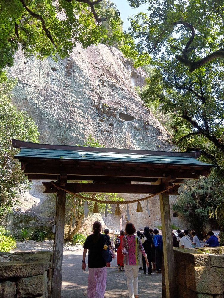 花の窟神社は古事記にも記された日本最古の神社と言われ、世界遺産にも登録されています。岩がご神体、天照大神の母である「イザナミノミコト」と火の神「カグツチノミコト」が祭られています。その岩の大きさに包み込まれるような体感を味わいました。
