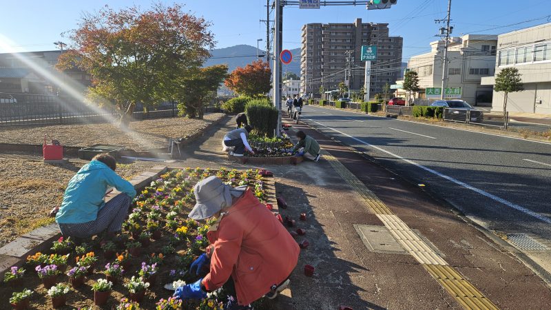 2025.11.16 活動報告 花壇整備(11月) 11月16日(日)、紺碧の秋空の下で、早朝8時から楓橋花壇の整備を実施しました。 あらかじめ株抜き整備を施してあった、ほくほくの土に株を設置。 花苗のポットから植栽する作業は、一時間ほどで終了し、ビオラ476株、ノースポール56株を植え替えました。 市役所様のご協力もあり、綺麗に整備された花壇への花苗の植栽で、素晴らしい景観となりました。 素敵によみがえった花壇。 前を通られましたら、ぜひご覧になってください。 天野 千秋 投稿者: iselady 活動報告 伊勢市駅前での伊勢音頭披露前の記事